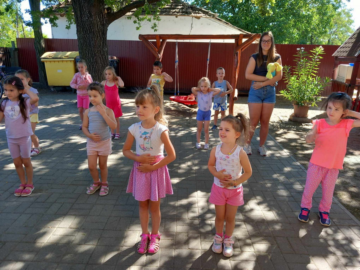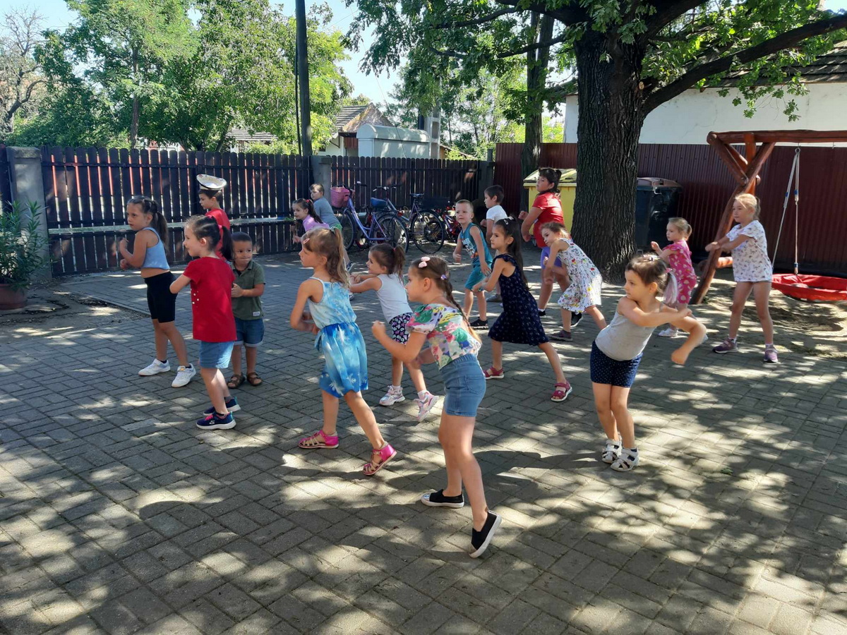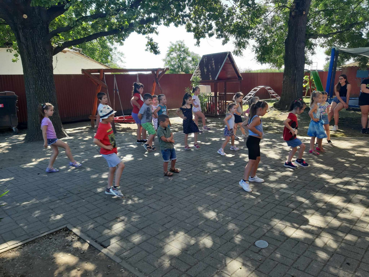 2024. július 28. és augusztus 2. között rendeztük meg a Nyári Napközis Tánctábort 4-8 éves óvodás és kisiskolás gyerekek részére. A sikeres és jó hangulatú táborban a gyerekek megismerkedtek néhány gyermek- és társastánc alapjaival, illetve a táncok között egyéni és csoportos játékokkal pihentek és szórakoztak.
